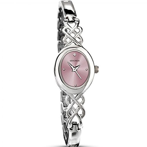 This stunning ladies Sekonda watch has a stainless steel case and is powered by a quartz movement. It is fastened with a silver metal bracelet and has a pink dial.