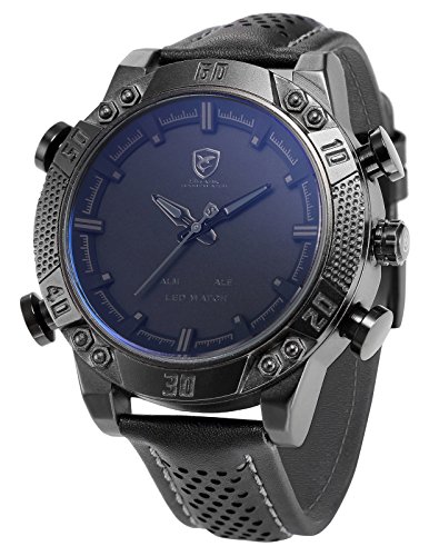 If you are looking for a product Shark Men's LED Date Day Alarm Digital Analog Quartz Sport Black Leather Band Wrist Watch SH262 Grey then I will show you information and reviews about this product. Shark Men's LED Date Day Alarm Digital Analog Quartz Sport Black Leather Band Wrist Watch SH262 Grey searched by people on the internet then not to run out of this stock. Make purchases with the click of a button 'Buy Now' if you really want to have this product. The following information and reviews about this product: